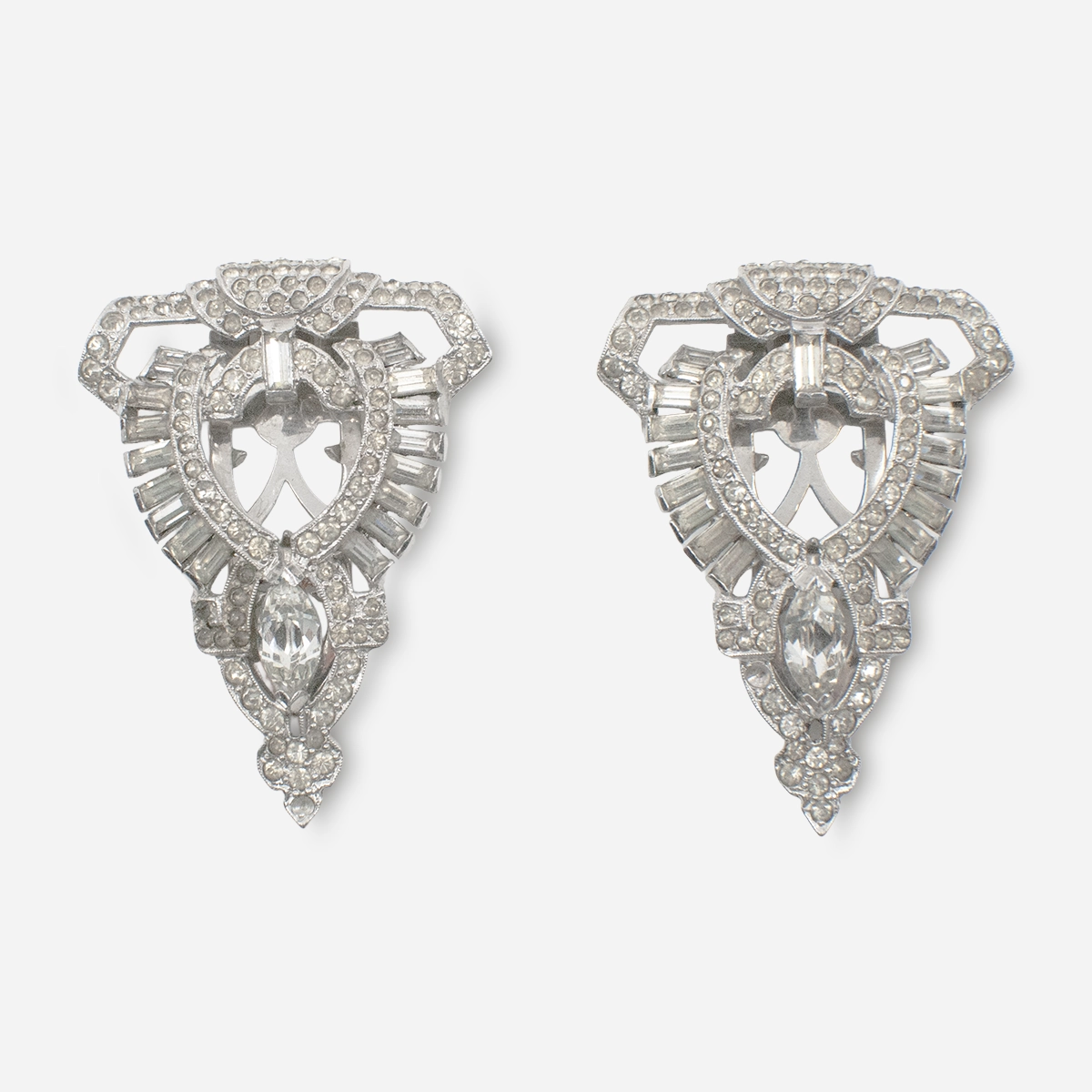Give your outfit a little drama with this sparkling pair of Art Deco diamanté dress clips.