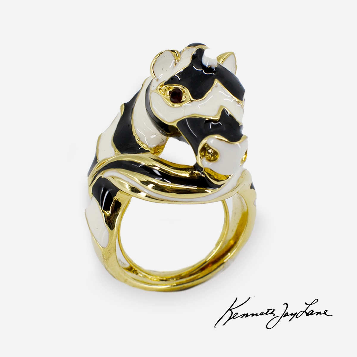 This delightful Kenneth Jay Lane ring is a cutely curious zebra.