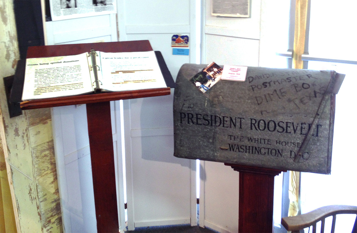 Dime Box did have its 15 minutes of fame in 1945 when it was selected to open the March of Dimes annual campaign. Featured in an article in Life Magazine, the postmaster general was on hand so he could have his picture taken with a mailbox on it’s way to President Roosevelt at the White House.5