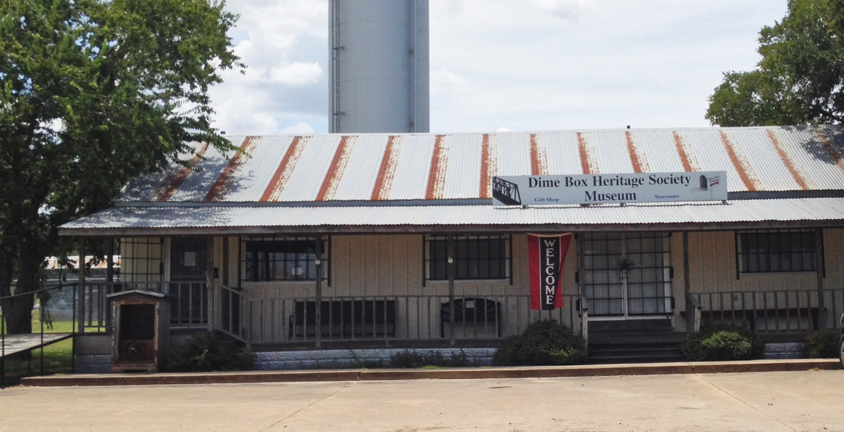 While we wait for the ancient fluorescent lights to warm up, here’s a little history. Dime Box, an unincorporated area in the heart of the Brazos Valley, was founded in 1869. Originally named Brown’s Mill for the local sawmill, the community didn’t have their own post office so residents would leave outgoing mail plus a dime for the postage in their mailboxes.